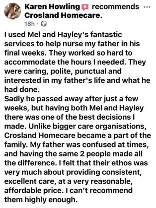 Address: based in Bognor Regis West Sussex mailto:croslandhomecare@yahoo.com